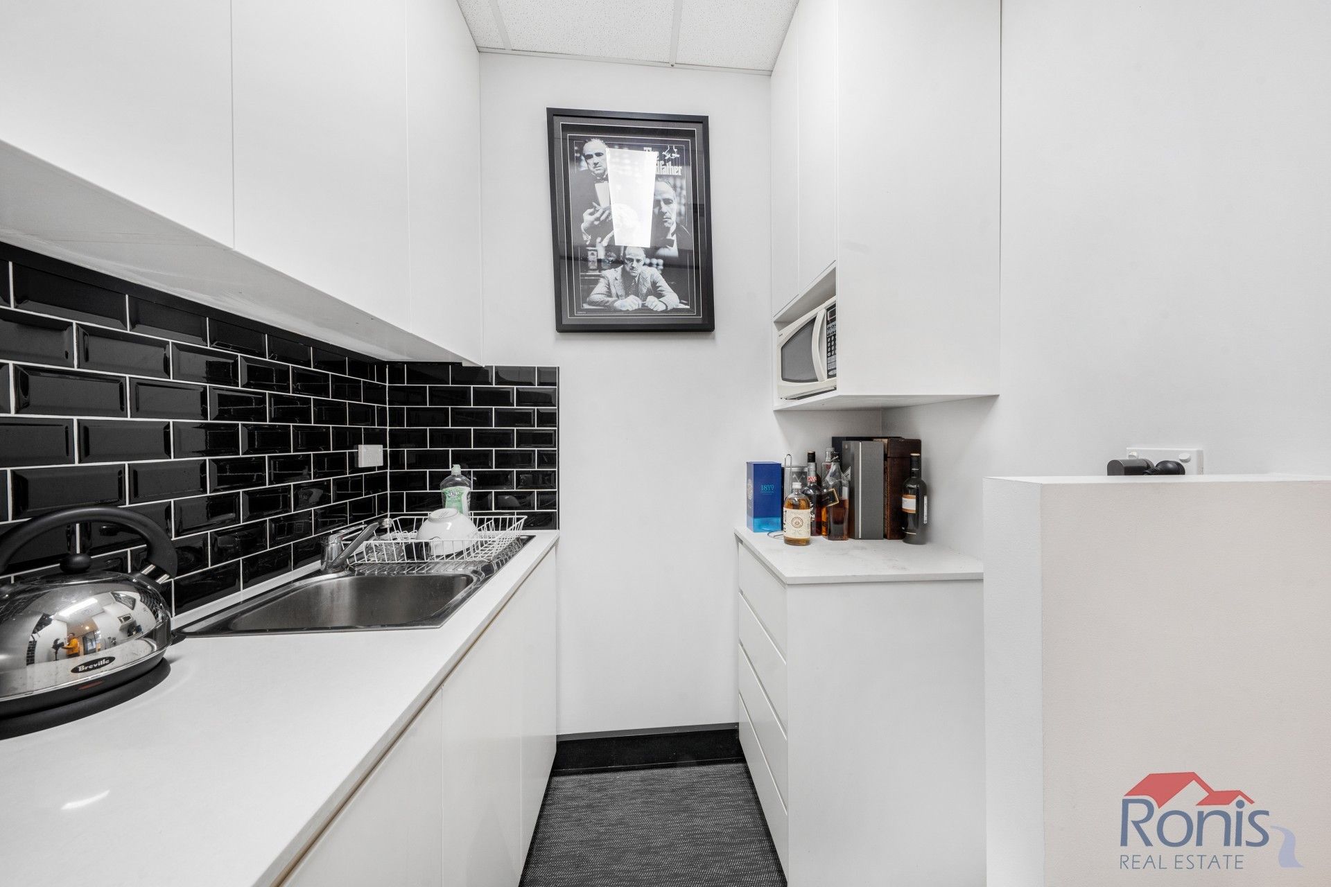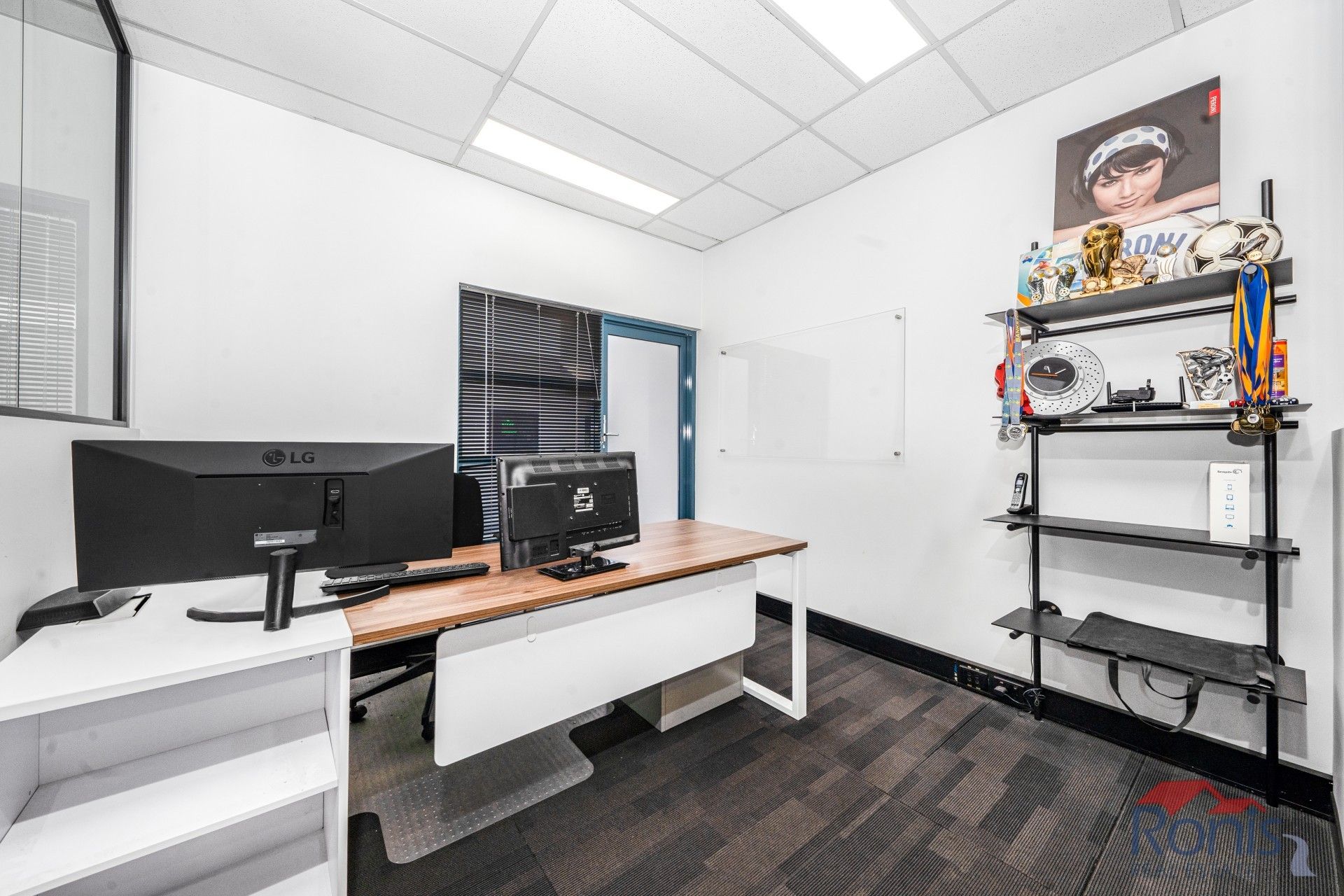 The office compromises of two levels, downstairs has polished concrete floors, showroom/storage space with hidden storage & cupboard space and tilt door access.